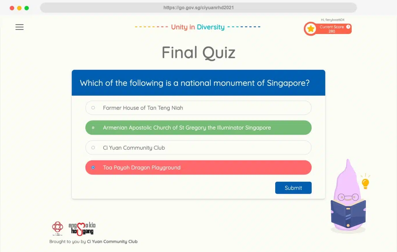 Ci Yuan Community Club (CYCC) is a bustling neighbourhood community club in Singapore. For Racial Harmony Day, they wanted an interactive virtual trail where users could learn more about Singapore and its racially harmonious roots. As a result, our team built them an interactive site from scratch — from conceptualisation, copywriting, design to development.